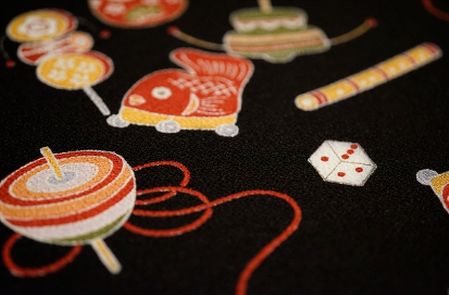 当店には、西陣上代縞御召、両面使いができる博多帯、米沢織等、さまざな縞の反物を豊富に揃えております。遠目に見ると無地に見える細かい縞、レトロな色使いが楽しい太い縞など、見た目も楽しめる江戸小紋の魅力を当店でお楽しみください。